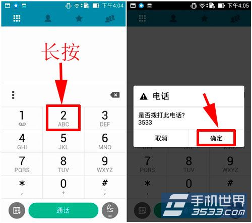 3)設置好後,在撥號界面長按剛才設置的號碼,就可以直接撥打聯系人了。