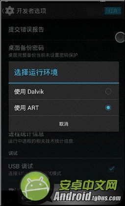 安卓系統一般的默認運行環境為Delvik,不過自從安卓4.4增加了ART運行環境之後,安卓系統的流暢度也大為提升。資料顯示,Delvik環境下開啟應用需要執行編譯+運行,因此速度比較慢;而ART環境則在應用安裝的時候就已經編譯好了,開啟即可運行,因此速度比較快。簡單點說,Delvik就是一輛折疊好的自行車,每次使用都需要組裝,而ART就是一輛已經組裝好的自行車,每次都可直接使用。當然,要把默認運行環境從Delvik修改為ART,你的系統必須升級到4.4。