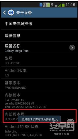 三星S5基於的是安卓4.4最新系統內核,默認USB調試是隱藏的,初次使用需要去激活打開,具體方法如下: