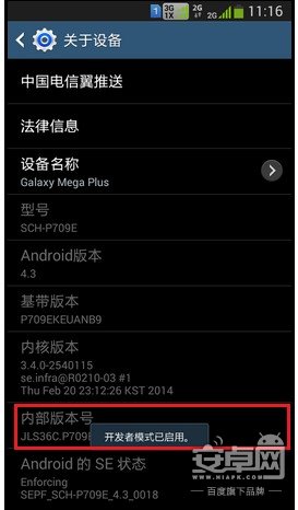 5. 在點擊進入到設備中我們會看到有一個【內部版本號】,直現在我們就不停的點擊它,直到顯示 器開發者模式已啟用 即可了