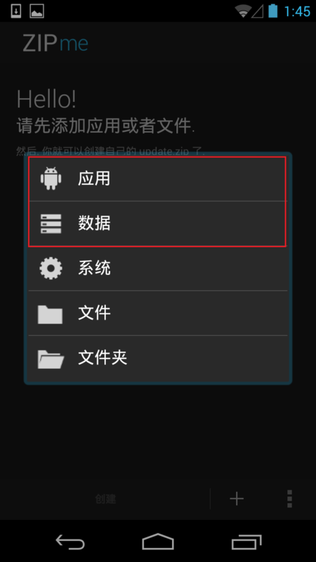下面來說下,系統應用的備份制作卡刷包。依舊,點擊zipme圖標,選擇“系統”菜單。