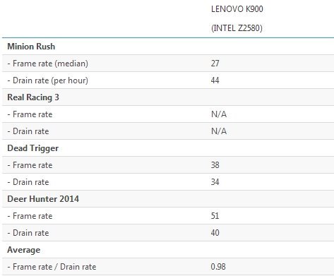 如圖所示,搭載英特爾移動處理器的聯想K900表現並不好,不過Z2580這款處理器即將被取代,也算是一個好消息。