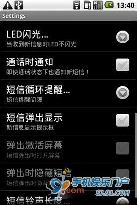 在界面中點擊高級設置,可以進行震動、LED閃光、鈴聲堅強、短信是否彈出顯示等多項個性化功能,足夠滿足日常需求。