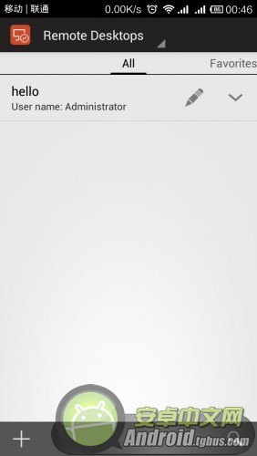 1. 首先下載安裝名為”Remote Desktops“手機遠程桌面軟件,安裝後打開,然後點擊左下角的+號,進行添加賬戶,如下圖所示,該軟件大家可以百度或者在應用市場搜素一下可以找到。