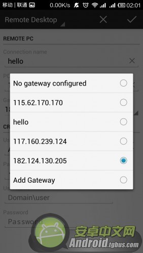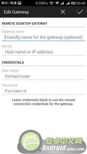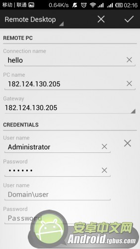 添加網關,第一行網關名直接填寫電腦IP,第二行也填寫電腦IP。第三行user name填Administrator,第四行password(密碼)填入自己電腦上的密碼。ok點擊右上角對號保存。