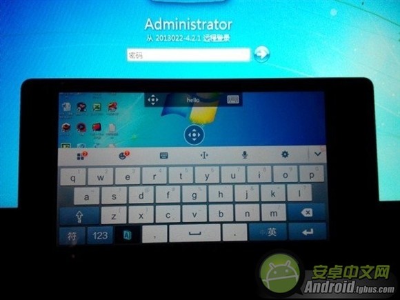 2.好了,成功控制電腦,紅米手機真的成了電腦了。此時電腦桌面會鎖住,提示已有遠程控制桌面,之後我們就可以通過手機操作電腦了,可以在手機上進行電腦行管操作了,並且還有虛擬鍵盤,方便我們文字輸入,如下圖所示: