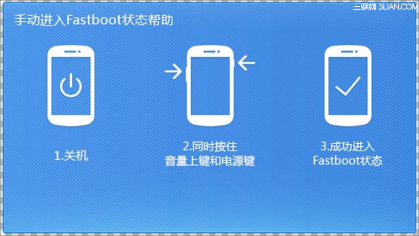 步驟四:保持USB線連接手機與電腦的狀態下,手動進入手機的Fastboot狀態