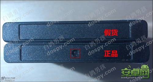 接下來看側面,真電池有一個凹進去的圓孔,假電池沒有: