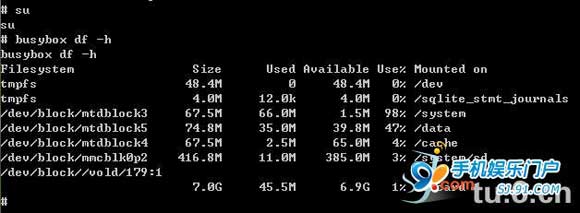 (如果你的卡成功分區的話。在這裡會看到system/sd前面的大小會是你分出來ext2的大小。如下圖第十一行。如果不是的話。那說明你的卡很可能分錯了。要重來。)