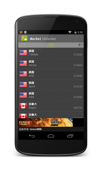 對於這款應用,相信筆者也無需多言了,它可以動態模擬手機的運營商代碼,從而查看市場裡的付費應用,需要手機有root權限。啟動“市場解鎖”,將“啟用解鎖”和“自動設置”選項打開。對了,即便你已成功切換為美區賬號,無需任何工具都能訪問完整版 Google Play ,也要做這個步驟哦!