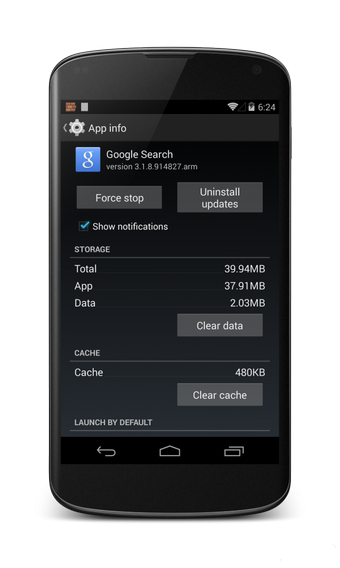 重啟完畢後,請檢查“fqrouter2”和“市場解鎖”是否已經順利運行。由於我們剛才進行了語言的更換,因此整個手機的操作語言都是英文。進入 Settings(系統設置)——Apps(應用程序),往右滑動至“All(全部應用列表)”,在程序列表中 找到“Google Search(谷歌搜索)”,點擊進入應用詳情,選擇“Clear data(清除數據)”。清除完畢後,返回上一級,找到 Google Play Store(Play 商店) ,同樣進行數據擦除的操作。