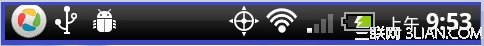 上面這張圖就是HTC手機的桌面,這裡我把桌面分成了5個部分,從上往下依次是通知欄、天氣、程序快捷方式、系統默認程序快捷方式、功能欄,我們從上往下開始介紹,最上面一欄,也就是藍色線條圈住的部分,通常我們叫做這部分為通知欄,如下圖: