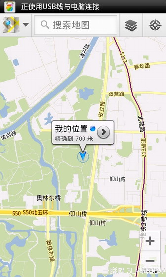 開啟了GPS衛星定位功能以後,就可以使用手機導航軟件,比如谷歌地圖,如下圖所示: