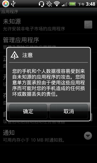 下面就教大家解除安裝軟件的限制,點擊設置,會到應用程序界面,將【未知源】這項勾選,彈出提示,點擊確定即可。如下圖