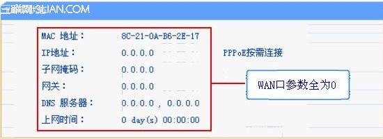首先先檢查路由器是否與外網連通,登錄路由器管理界面,在運行狀態---WAN口狀態處看,WAN口參數是否為非0,若為0,請按照路由器快速設置指南書重新設置一遍。