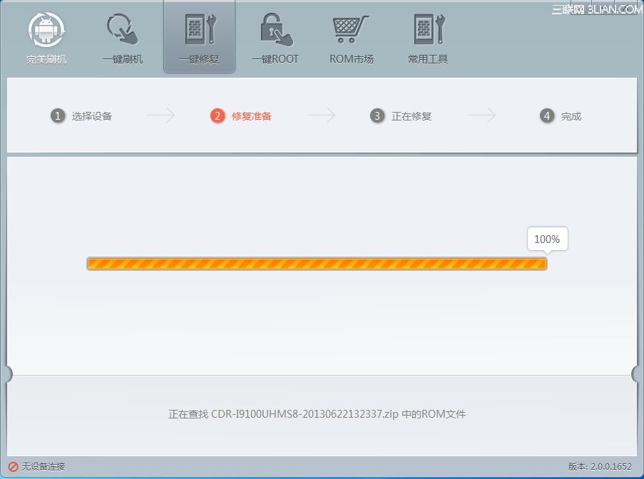 刷機需要5-10分鐘的時間,耐心等待一會兒。此過程要特別留意手機當前的狀態,等到刷機完成,出現修復完成頁面時,手機重新啟動,可以關閉軟件了。