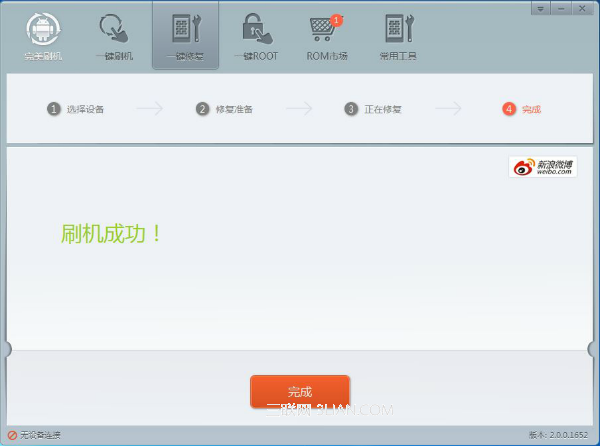 救磚工具運行到“修復完成”,軟件此時提示你HTC t328d救磚工作幾近完成,點擊“完成”,然後等待手機自動重啟!