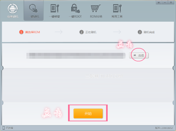 方法二:如果刷機之前你就已經准備好中興u930 rom包,請直接點擊主頁面的“一鍵刷機”按鈕,進入刷機頁面,點擊“選擇”,選定你已經准備好的中興u930刷機包,點擊頁面下方的“打開”,點擊刷機頁面“開始”按鈕,軟件立即運行中興u930刷機。