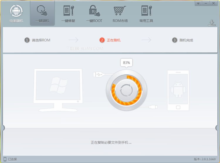 途徑一:完美刷機軟件擁有“rom推薦”功能,免去機友們搜集HTC g13 rom的煩惱,連接手機後軟件根據機型向你提供優秀rom資源,浏覽完畢選定你中意的 rom資源,點擊“一鍵刷機”軟件開始下載HTC g13刷機包,下載需要5-10分鐘,下載完畢軟件立即運行HTC g13刷機。