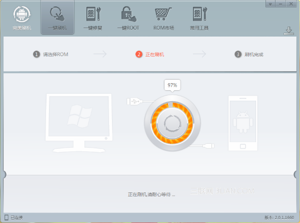 雙擊軟件圖標啟動Google nexus s刷機工具,用數據線連接手機和電腦。