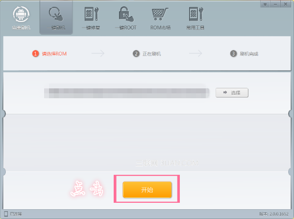 途徑二:如果刷機之前你就已經准備好索尼L36h刷機包,那麼請你直接點擊主頁面的“一鍵刷機”按鈕切換到刷機頁面,點擊“選擇”,選定你已經准備好的索尼L36h刷機Rom包,點擊頁面下方的“打開”即可完成導入Rom的操作,點擊“開始”,軟件立即運行。