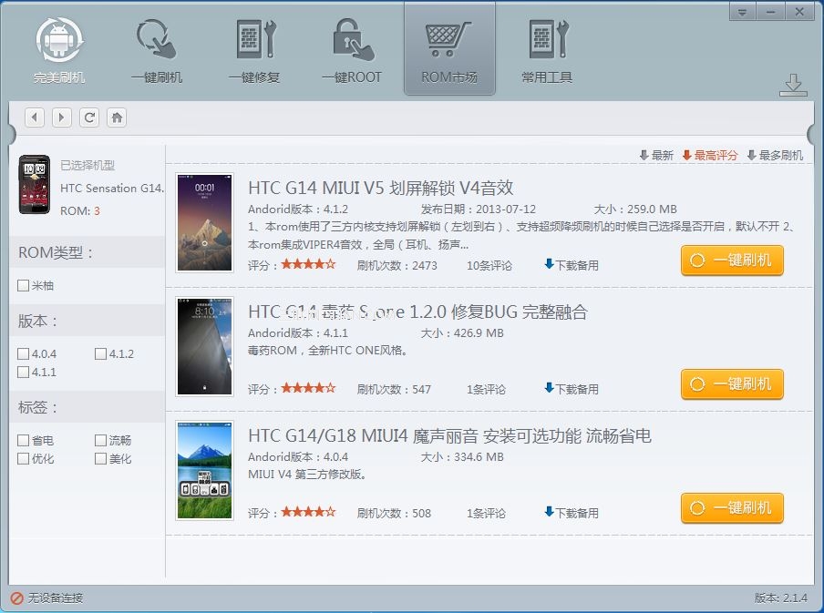 三,找到ROM市場,按條件選擇ROM進行刷機。