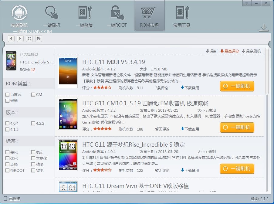 其三,打開ROM市場,有條件的選擇ROM包刷機。