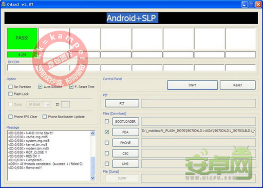 在出現上面的PASS時,就可以移除數據線,等手機重新啟動