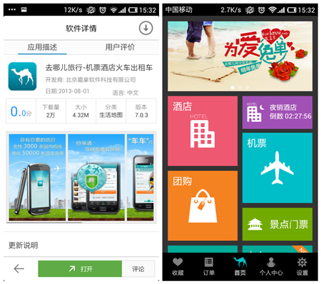 去哪兒旅行是一款針對用戶旅游出行的應用,提供酒店、機票、景點、火車票、出租的預訂服務,一站式全程服務。七夕期間,你的行程交給它,可以輕松放心了。