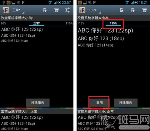 仔細的朋友大概已經發現了,應用中默認只提供了85%、90%、正常、115%、135%一共五個選項。就算是最大的135%,跟自帶的最大號字體也沒多少差距啊。別急,點擊右上角的“F+”按鈕,然後拖動下方的滑塊即可自定義字體大小了。從最小的50%到最大的300%,統統木問題!最後不要忘記點擊底部的“新增字體大小選項”就可以。