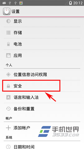 1)首先,點擊“設置”菜單進入,在“設置”菜單欄裡點擊“安全”進入。(如下圖所示)