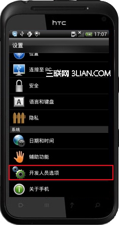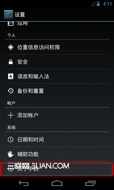 如果您的手機是Android 4.0.X或4.1.X版本,請找到系統設置選項,打開之後拖動到頁面的下方,找到”開發人員選項“,點擊進入後打開“USB調試”。