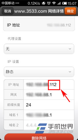 注:大家可以留意下,小編現在演示的是自動獲取到的IP地址,後三位為112。