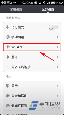 1)點擊手機“設置”進入設置菜單欄,在設置菜單欄裡點擊WLAN進入。(如下圖所示)