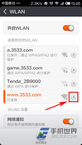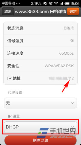 2)大家按照平常一樣連接一個無線網絡,或者連接自己需要設置靜態IP地址的無線熱點。待連接好後點擊該熱點進入高級設置,在IP設置一欄裡進行選擇。(如下圖所示)