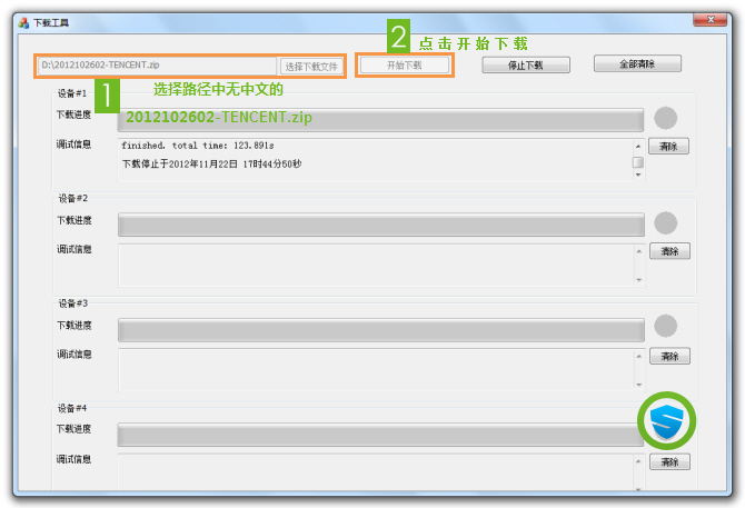 • 選擇第二步所拷貝至根目錄的 2012102602-TENCENT.zip 文件,再點擊開始