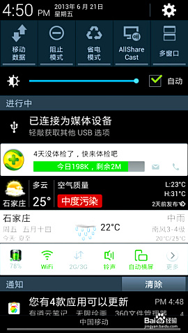 三星手機去掉屏幕左邊工具欄方法,I9300 I9305 NOTE1或者2都適用!如圖,我的機器是三星I9305就用她來演示一下,屏幕左面經常出現一個工具欄,既影響美觀又容易誤操作很煩人!如何去掉他呢!下面跟我一步一步來吧!用手從屏幕雙方向下滑動屏幕會看到屏幕右上角有個多窗口,點擊關閉它關閉後多窗口會變成灰色,這樣左面討厭的工具欄就給關閉掉了關閉掉了很清爽。