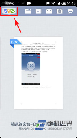 4)找到並點擊打開WORD文檔就可以了,WPS Office不只提供了查看WORD文檔,而且如果有需要的話大家也可以通過WPS Office對WORD文檔進行編輯。(如下圖所示)