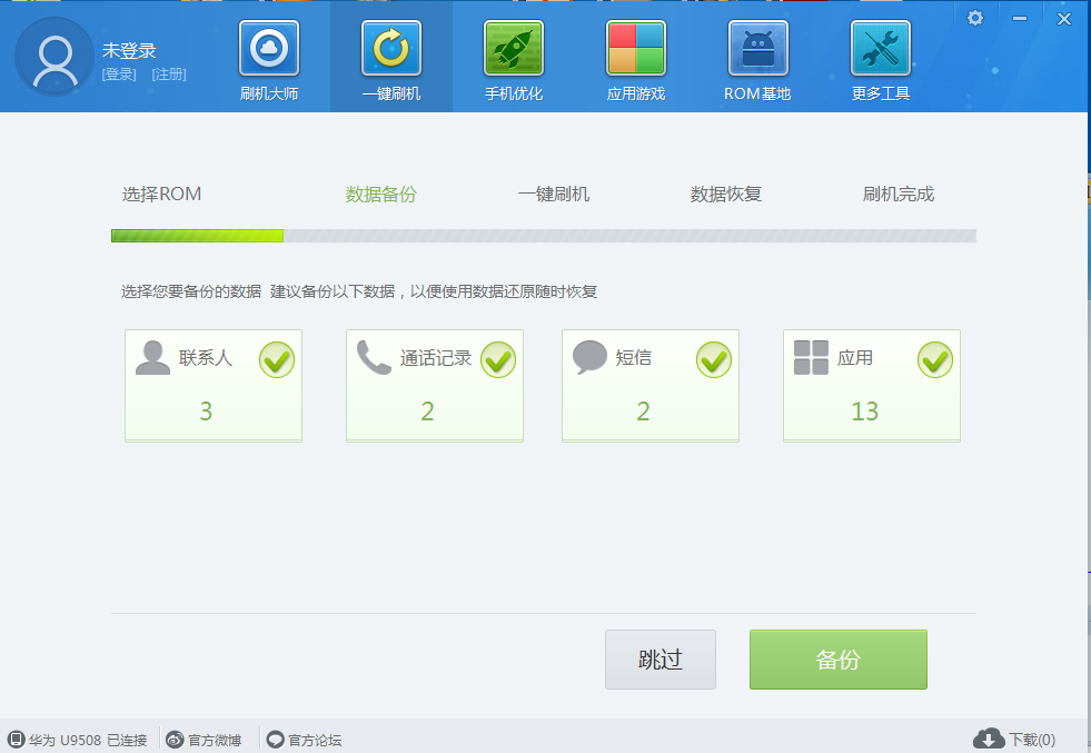刷機前刷機大師會自動提示您要備份,以便刷機成功後恢復數據,這樣就再也不怕刷機後電話薄信息等數據丟失啦。