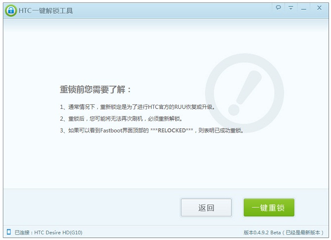 HTC手機刷機前就需要解鎖,當下比較熱門易用的工具為 HTC一鍵解鎖工具 解鎖方式為官方解鎖,若需要保修則需要刷回官方RUU,而刷RUU之前需要重鎖機器,所以解鎖工具提供重新上鎖的功能!上鎖之後雖然顯示為 Relocked 但很多時候依然是可以去售後進行保修成功的!必竟售後未必知道 Bootloader 是啥意思……