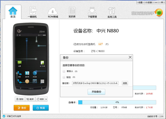 四、成功連接以後,在刷機之前需要做好備份,主要是備份手機裡面的信息,刷機對於手機內存卡不會有影響的。