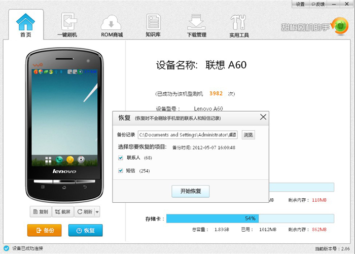 四、成功連接以後,在刷機之前需要做好備份,主要是備份手機裡面的信息,刷機對於手機內存卡不會有影響的。