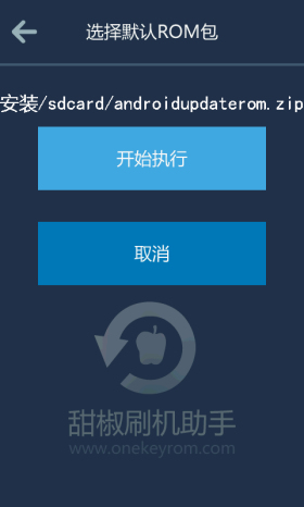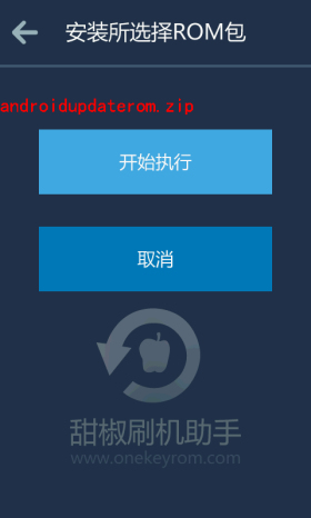 在完成以上步驟之後,那我們就開始體驗神奇的刷機之旅吧!點擊甜椒中文觸摸版Recovery界面的“自選ROM”,進入“從SD卡選擇ROM包”界面後,找到之前復制到內存卡裡面的ROM包,選擇好點“開始執行”,就會進入刷機流程啦。只需要等待幾分鐘,刷機就會完成,同時點擊“重啟”,手機在開機後就是一個新的系統啦!