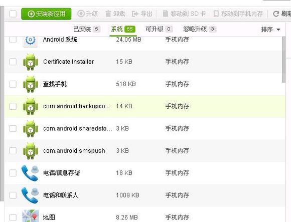 刷過之後 自帶軟件剩余65 依次類推 個人認為不需要的都可刪之 前提清楚各軟件重要性避免成磚。
