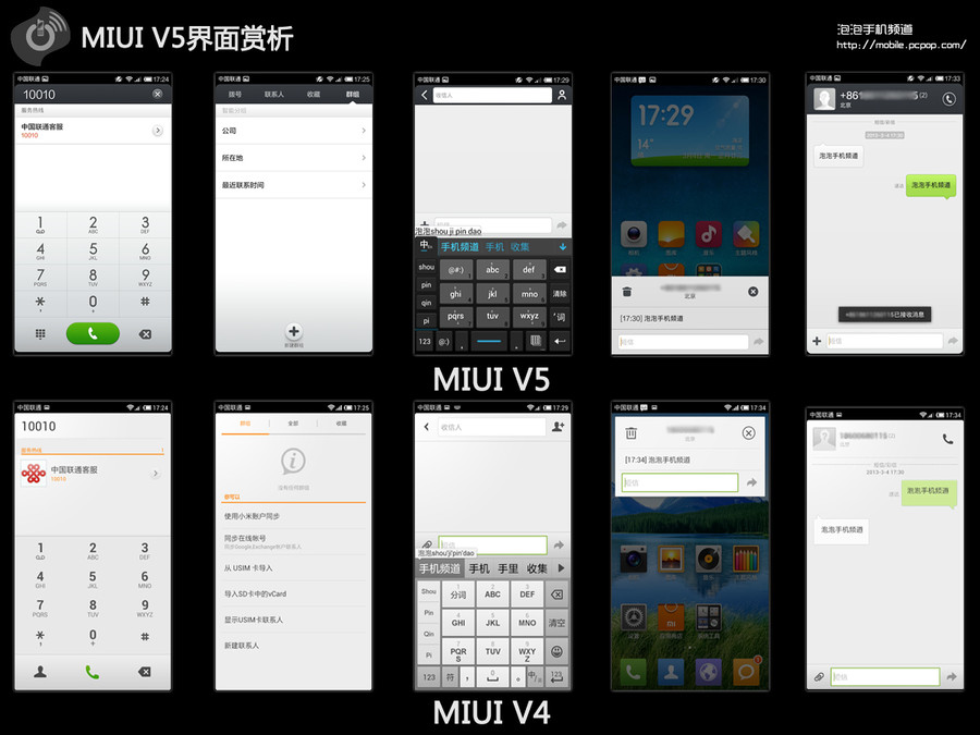 在撥號、通訊錄、短信等截面,MIUI V5突出了按鈕功能,例如撥號盤底部的撥號鍵。而聯系人截面則取消了小米賬號同步截面。此外MIUI系統在短信發送成功以後,在界面會有提示。當然,此前MIUI V4就已經有該功能。