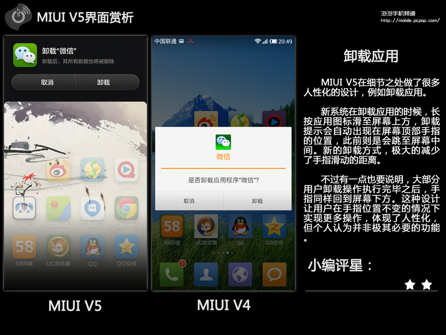MIUI V5在細節之處做了很多人性化的設計,例如卸載應用。