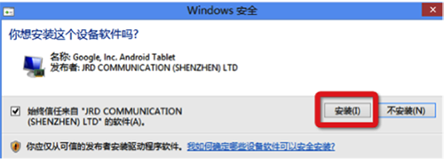 STEP2:重啟豌豆莢,豌豆莢會重新安裝驅動,請您按照豌豆莢的提示進行操作,如果彈出「用戶賬戶控制」界面,請您選擇「是」。並在接下來彈出的窗口中點擊「安裝」按鈕;如果您點了「否」,豌豆莢將無法正確安裝您手機的驅動,您需要回到 STEP 1 重新操作;