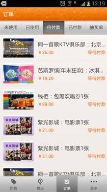 除以上功能外,點評團購1.2還支持發送團購券同時發送商戶電話地址和查看未使用抵用券兩項功能,同時將團購券和訂單功能合並在一起。