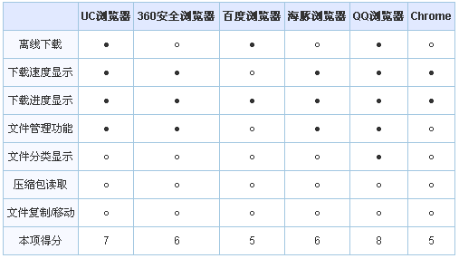 本次測試的內容包括了下載管理以及文件管理,首先浏覽器要有這個功能,而至於分項目,則包括了下載速度的顯示、下載進度顯示、斷點續傳功能等。同時文件管理我們也進行了相應的分類。