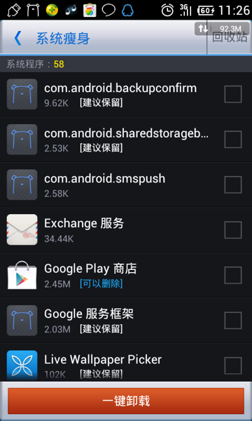 4、卸載系統程序:現在越來越多官方系統自帶很多惱人的程序,而且不能卸載,這些軟件往往都會開機自啟動,對系統流暢度影響比較大,但是要刪除這些自帶軟件需要獲取root權限。當您獲取root權限後,可以利用騰訊手機管家、360手機衛士等卸載系統程序,保留更多的內存空間。